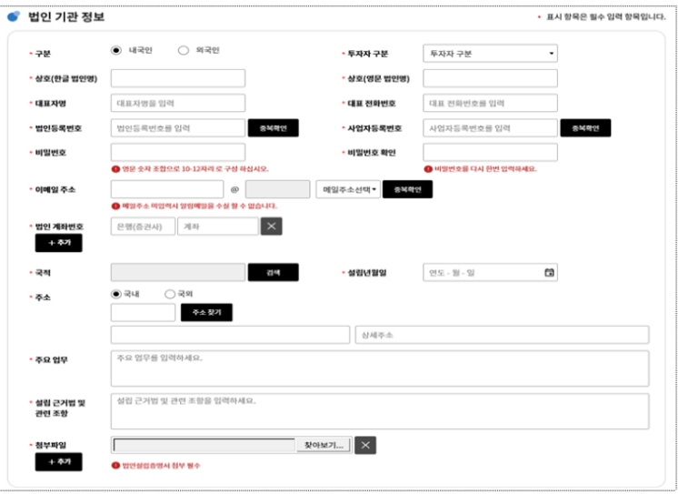 - 법인 정보: 법인등록번호, 계좌번호 등