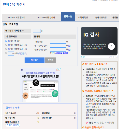 추천 연차수당 계산기 사이트