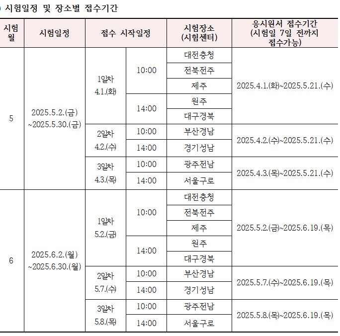 - 시험일 7일 전 접수 마감: 선착순으로 접수되므로 빠른 신청 필요.