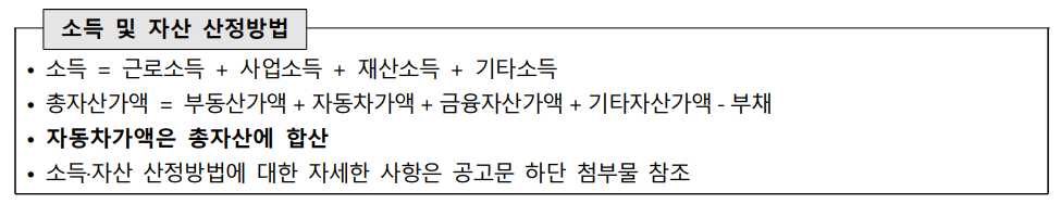 신청자는 아래 소득 및 자산 기준을 충족해야 합니다.