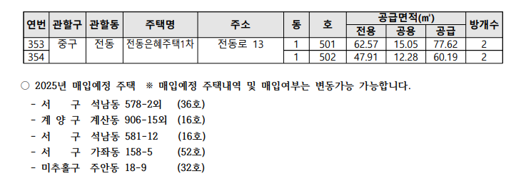 | 주택 유형 | 국민주택 규모(전용면적 85㎡ 이하, 방 2개 이상) |
