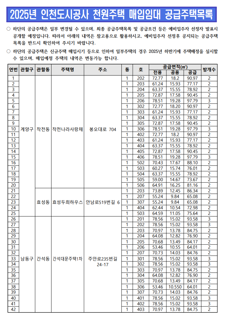 2025년 인천 천원주택 모집공고 대상 조건 총정리합니다.